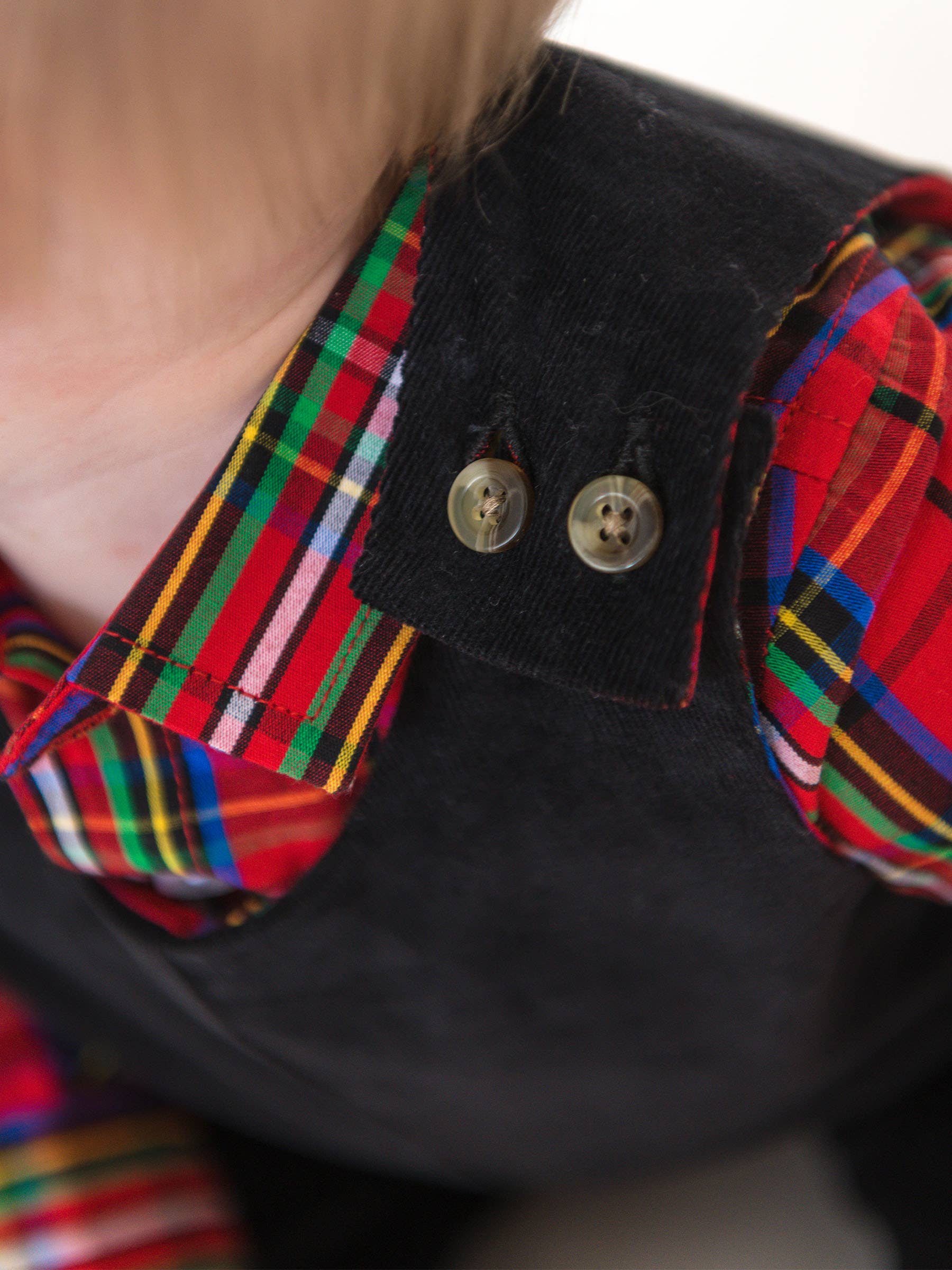 This cozy corduroy longall romper is perfect on its own or layered with a coordinating bodysuit for a stylish outfit. Functional buttons at the shoulders and snaps at the legs make changing a breeze.