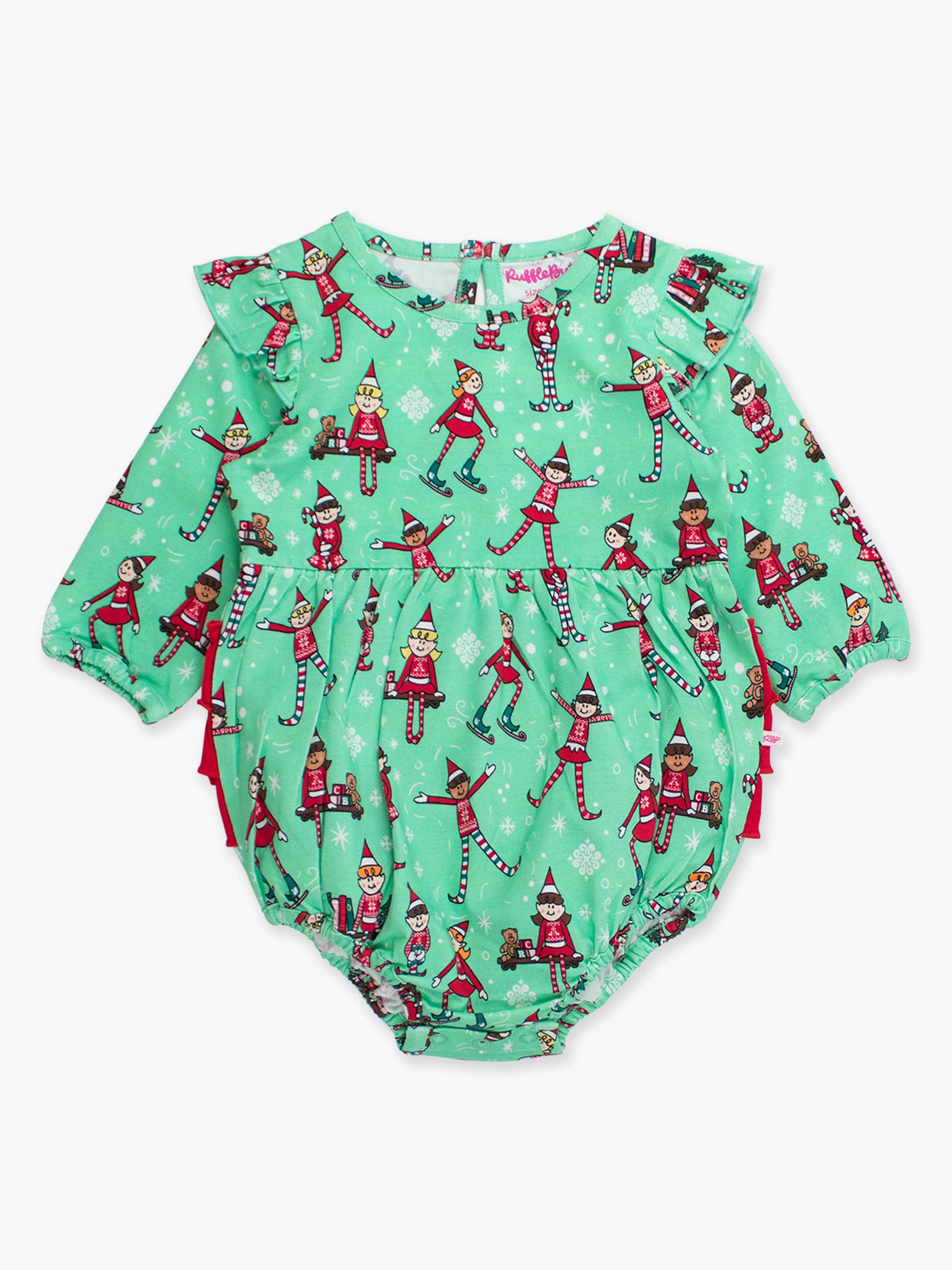 Baby Girls Elf Buddies Knit Long Sleeve Flutter Bubble Romper