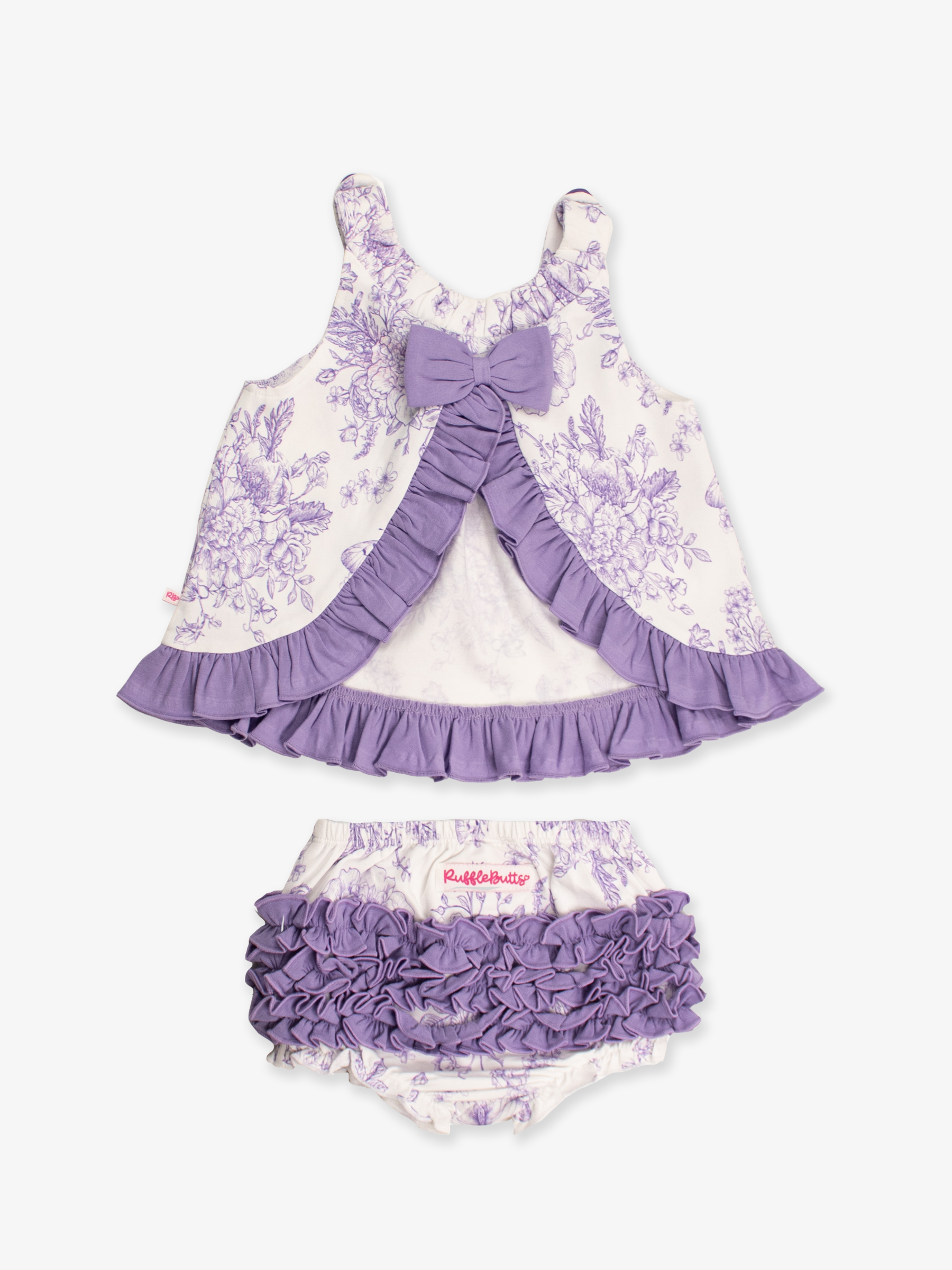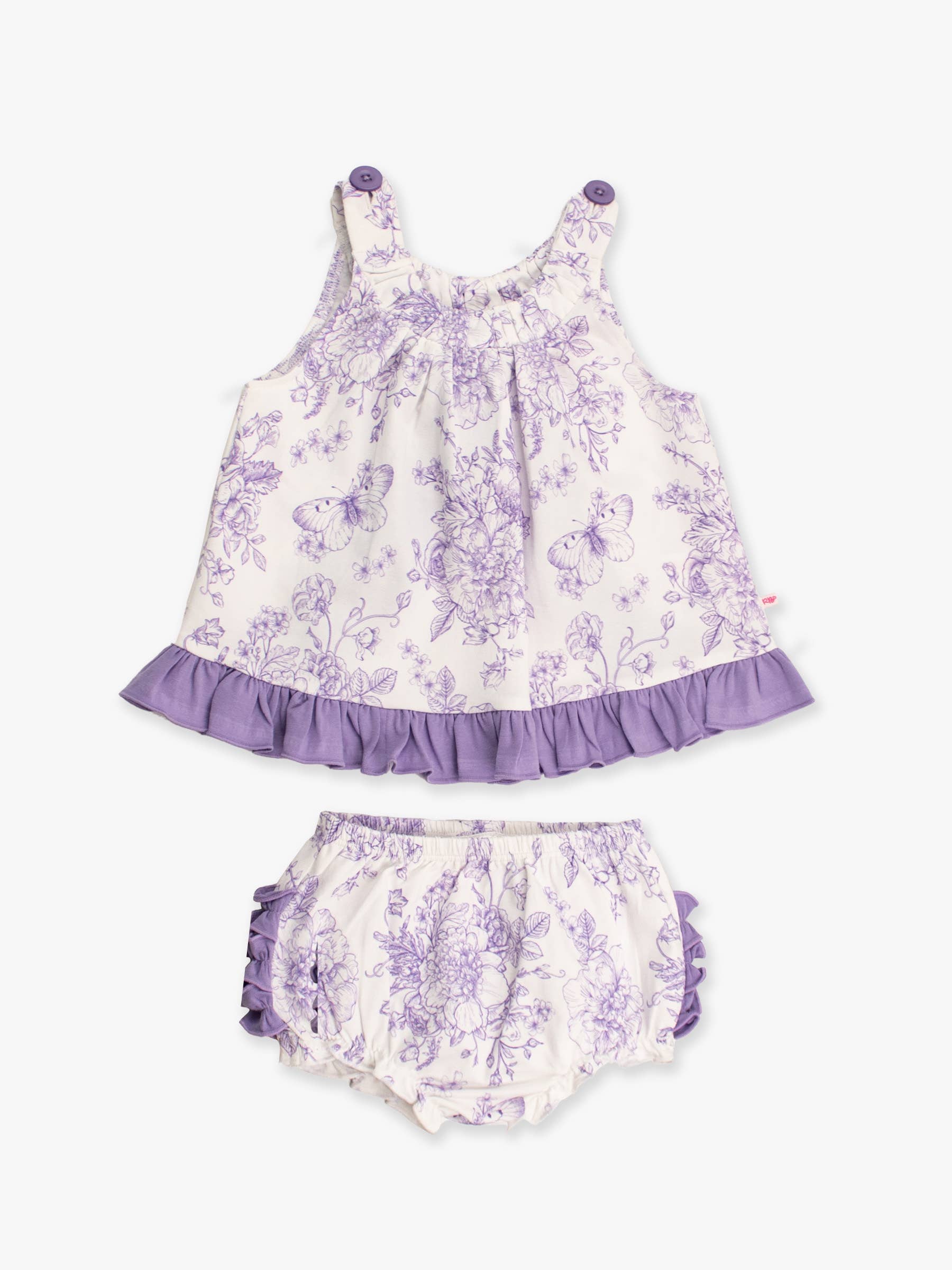 Baby Girls Wisteria Purple Butterfly Garden Toile Knit Swing Top and Bloomer Set