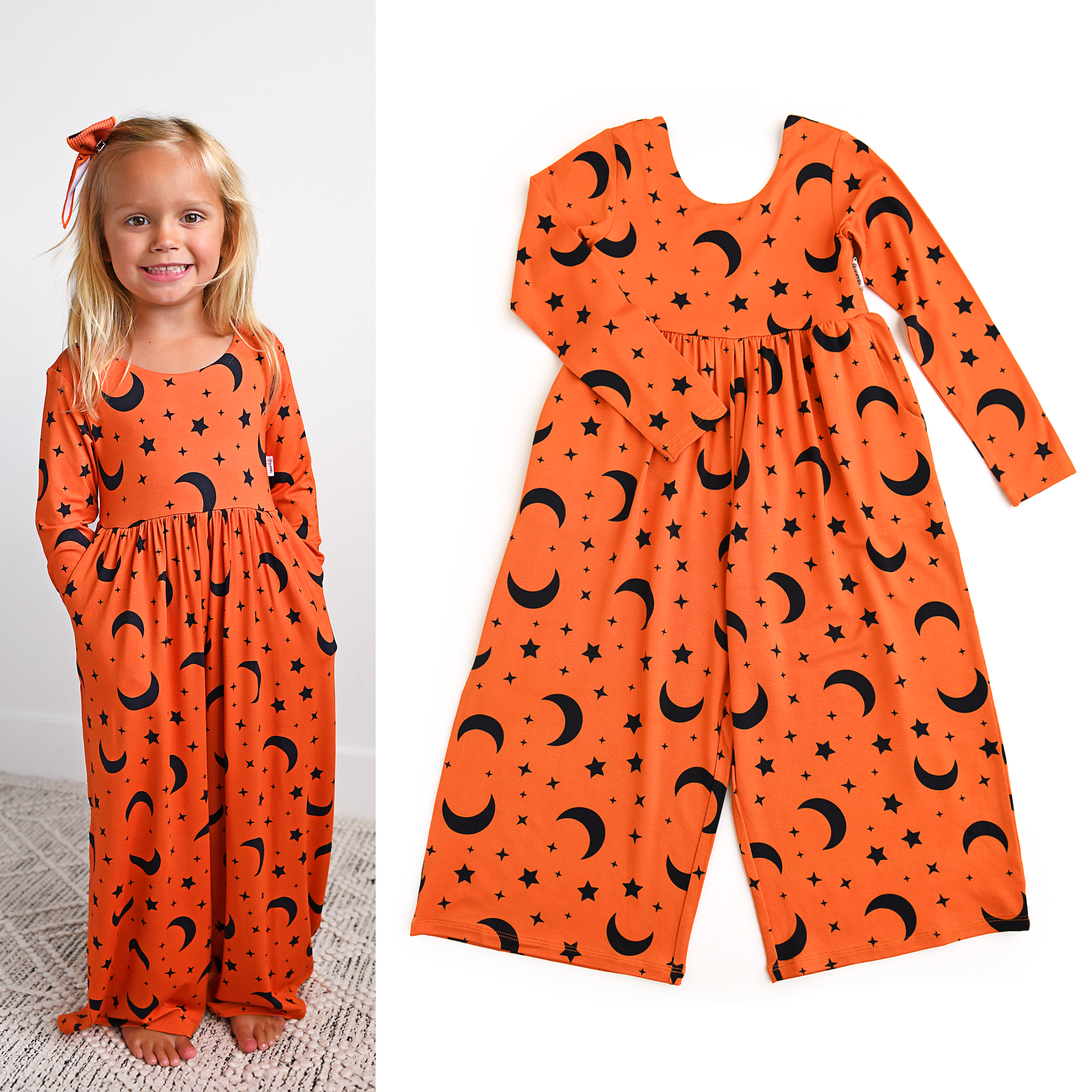 Blaise Orange Moon WIDE LEG ROMPER Halloween Bamboo Kids Outfit