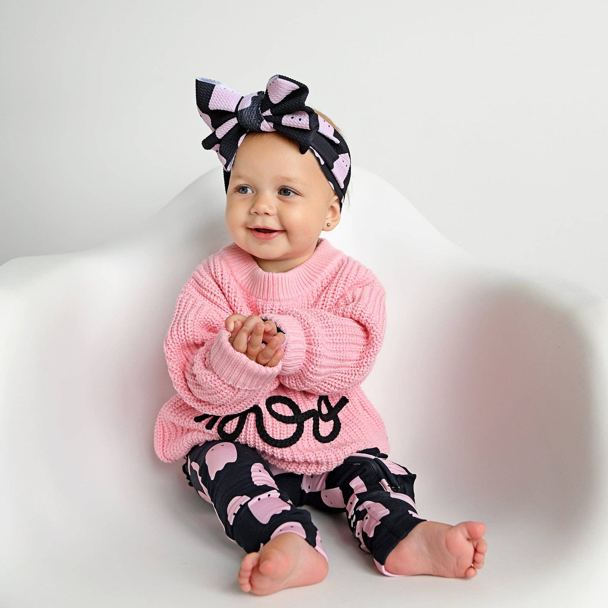 This listing is for the most adorable oversized sweater for your cutie! Made from 100% cotton, it is SO soft and plush. We recommend purchasing the size your little one wears, it is meant to have an oversized look.