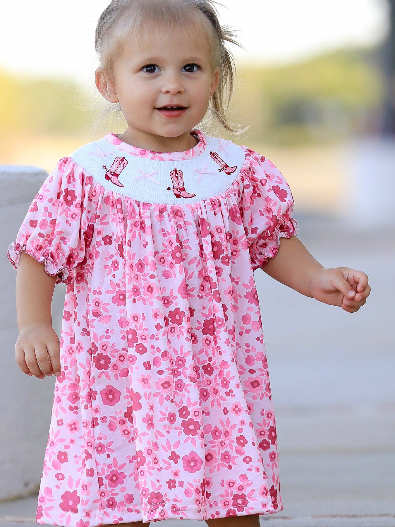 Boots Smocking Embroidered Short Sleeve Floral Dress