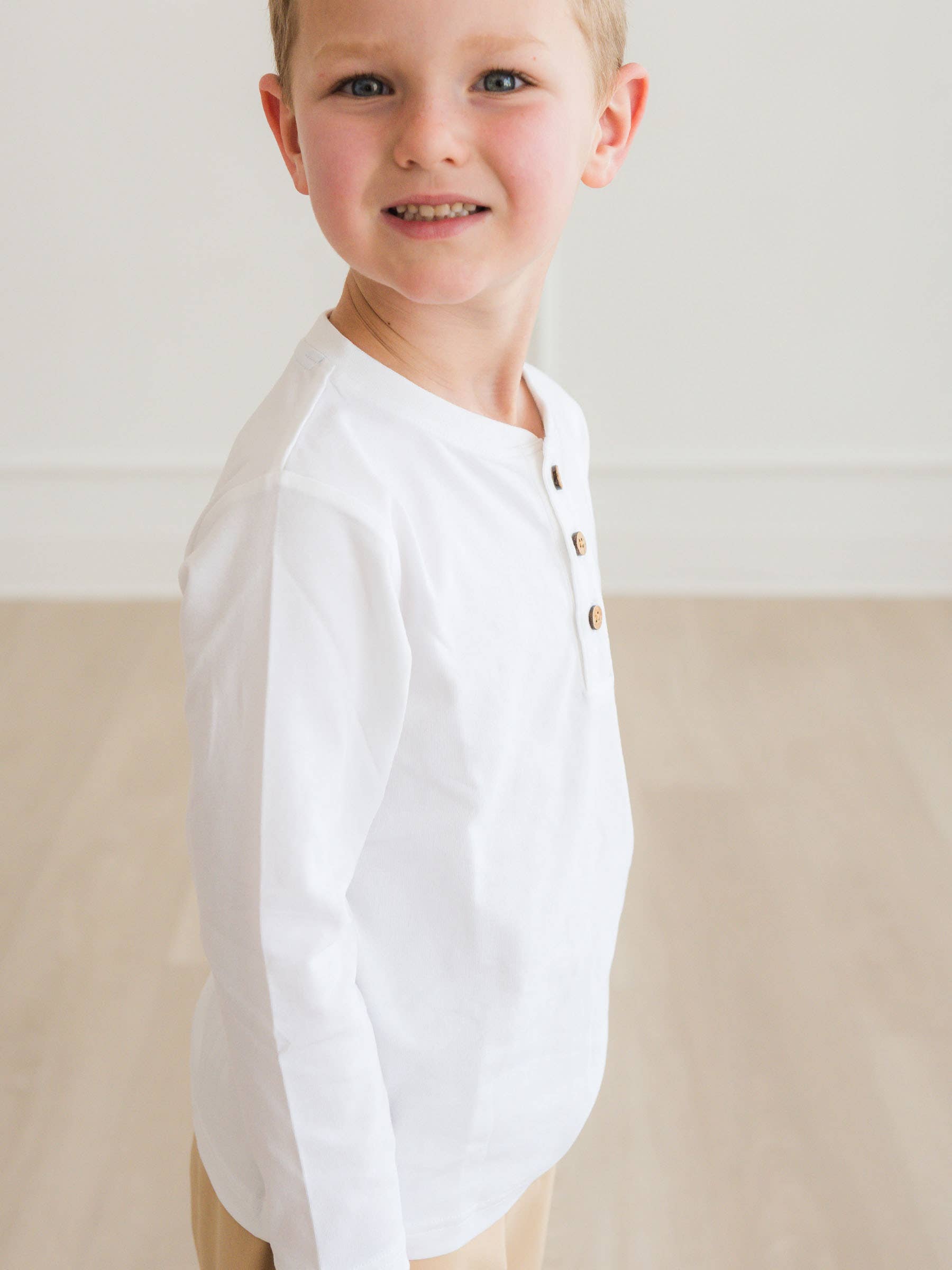 This long sleeve henley tee is a stylish addition to any boy's wardrobe. The henley style, complete with buttons, offers a classic look that never goes out of style. Made from a lightweight, stretch knit fabric, this tee ensures comfort and ease of movement all day long. Whether it's for a casual day out or a dressier occasion, this henley tee is a must-have for any stylish young man's collection.