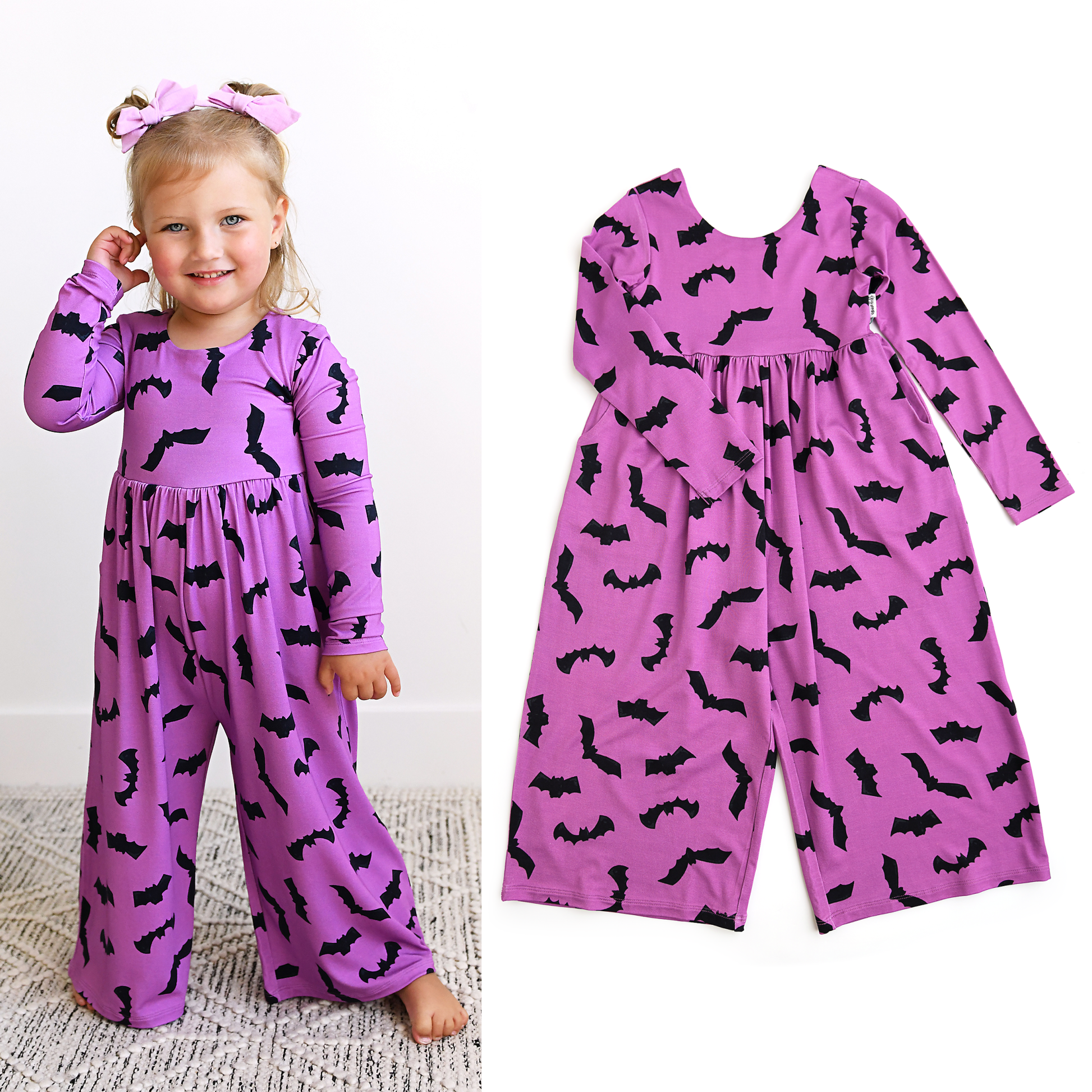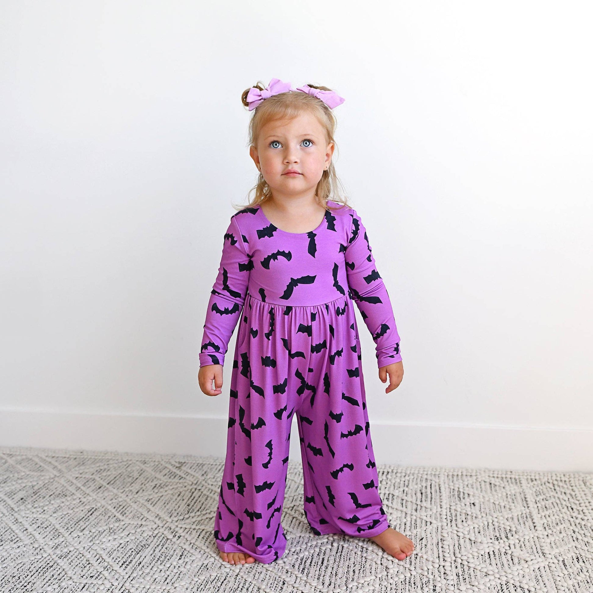 Echo Purple Bats WIDE LEG ROMPER Bamboo Halloween Outfit