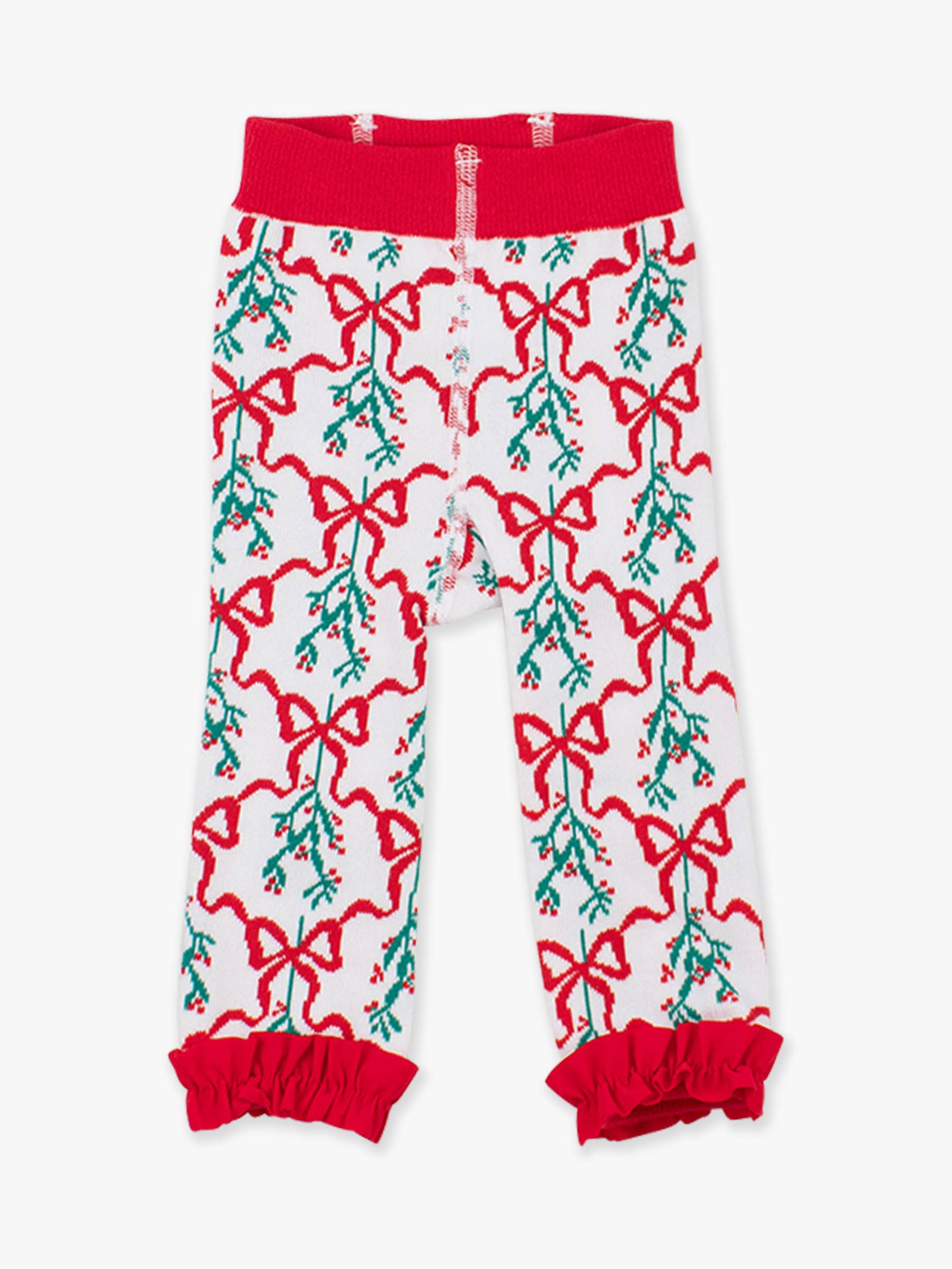 Bright red ribbons and sprigs of holiday mistletoe make this print perfect for the holiday season! Pairs well with Red, Green, Emerald Green, White.
