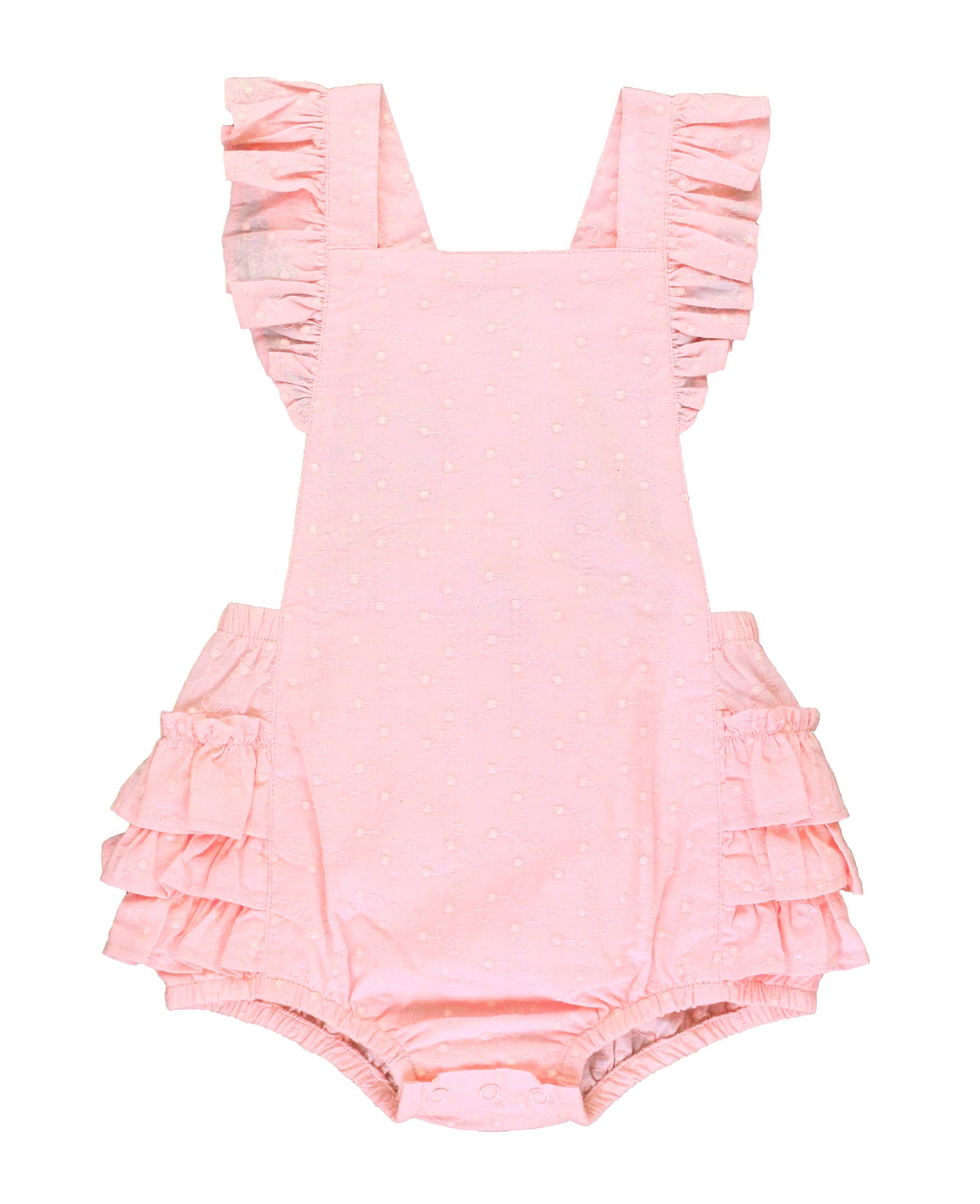 Girls Pink Embroidered Vintage Dot Flutter Overall Romper