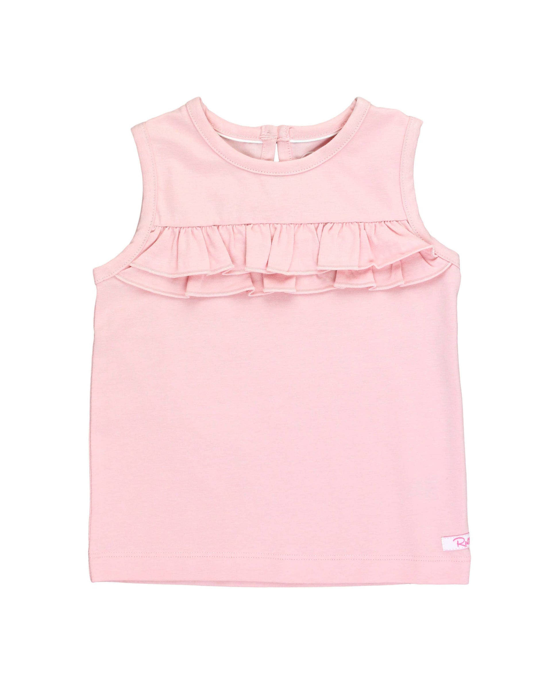 Simple, sweet, and perfect for sunny days! This soft knit tank features wide straps for easy, comfy wear and a ruffle detail that runs straight across the neckline for a touch of playful charm. Great for pairing with shorts, skirts, or layered under a cardigan.