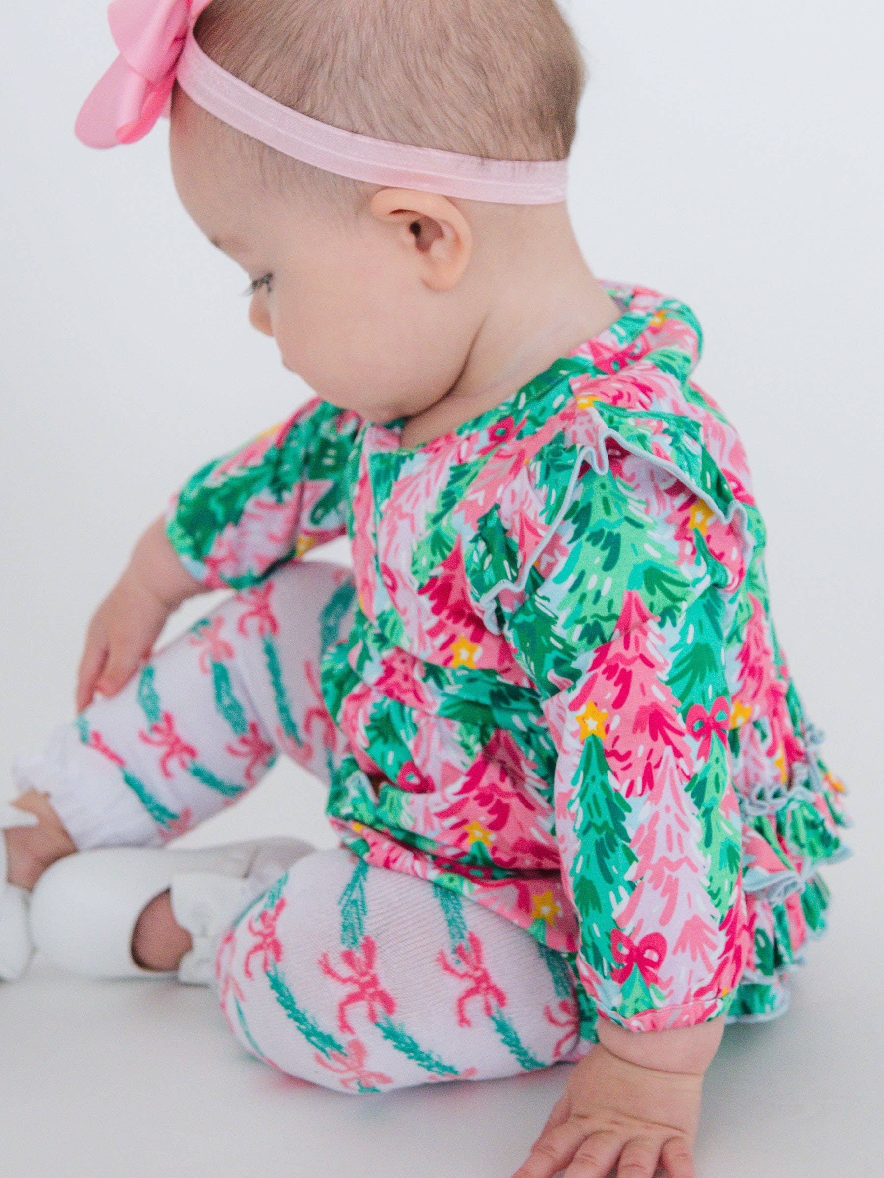 Decorated with lots of tinsel and bows, this sweet pattern is in the holiday spirit! Pairs well with Emerald Green, Pink, Hot Pink.