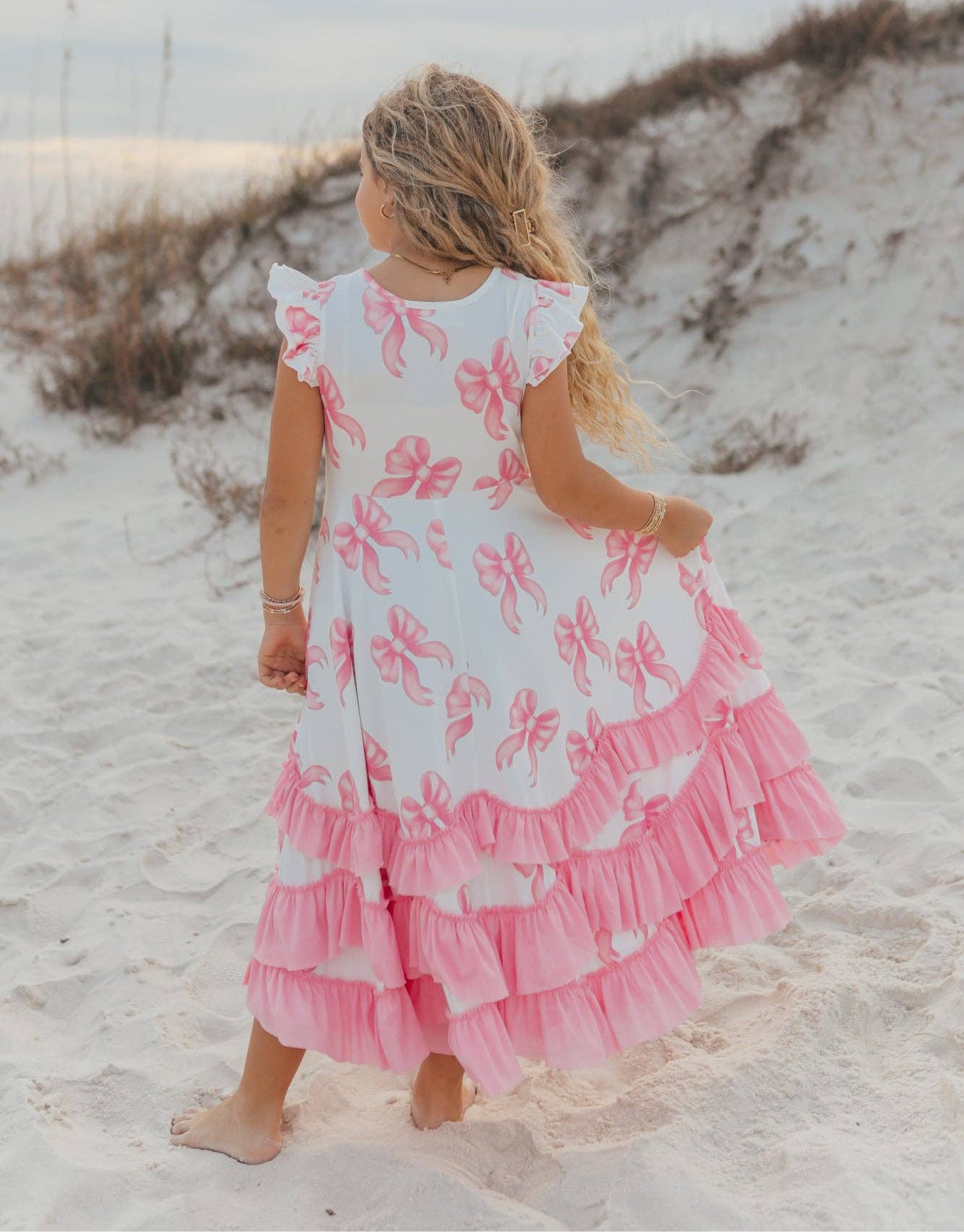 Twirl into spring and summer in style with the Bella Bow Ruffles Dress! This charming dress features delicate ruffles and a sweet pink bow detail that'll have her feeling like a princess. Perfect for playdates, parties, or everyday adventures, the soft fabric keeps her comfortable while the playful design brings out her personality. A wardrobe essential that's as fun as she is!