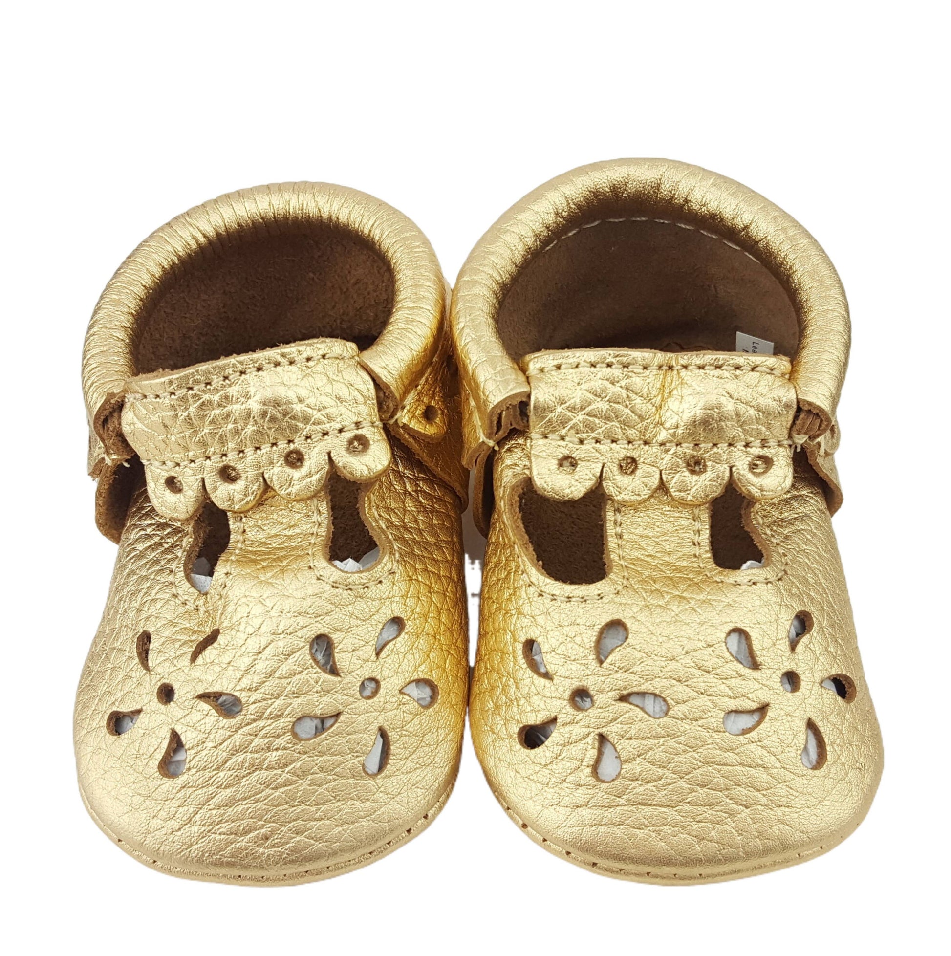 Mary Jane Gold Soft Genuine Leather Baby Moccasins