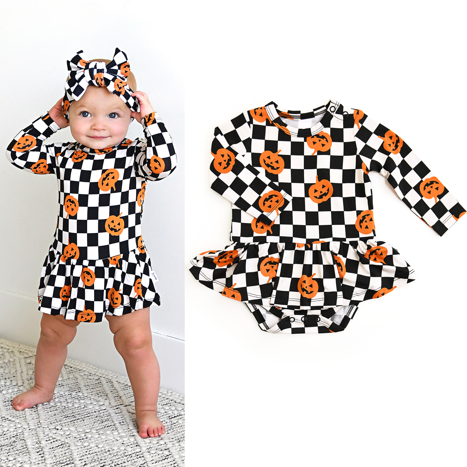 Merlin Checkered Pumpkins TUTU Bamboo Baby Halloween Dress