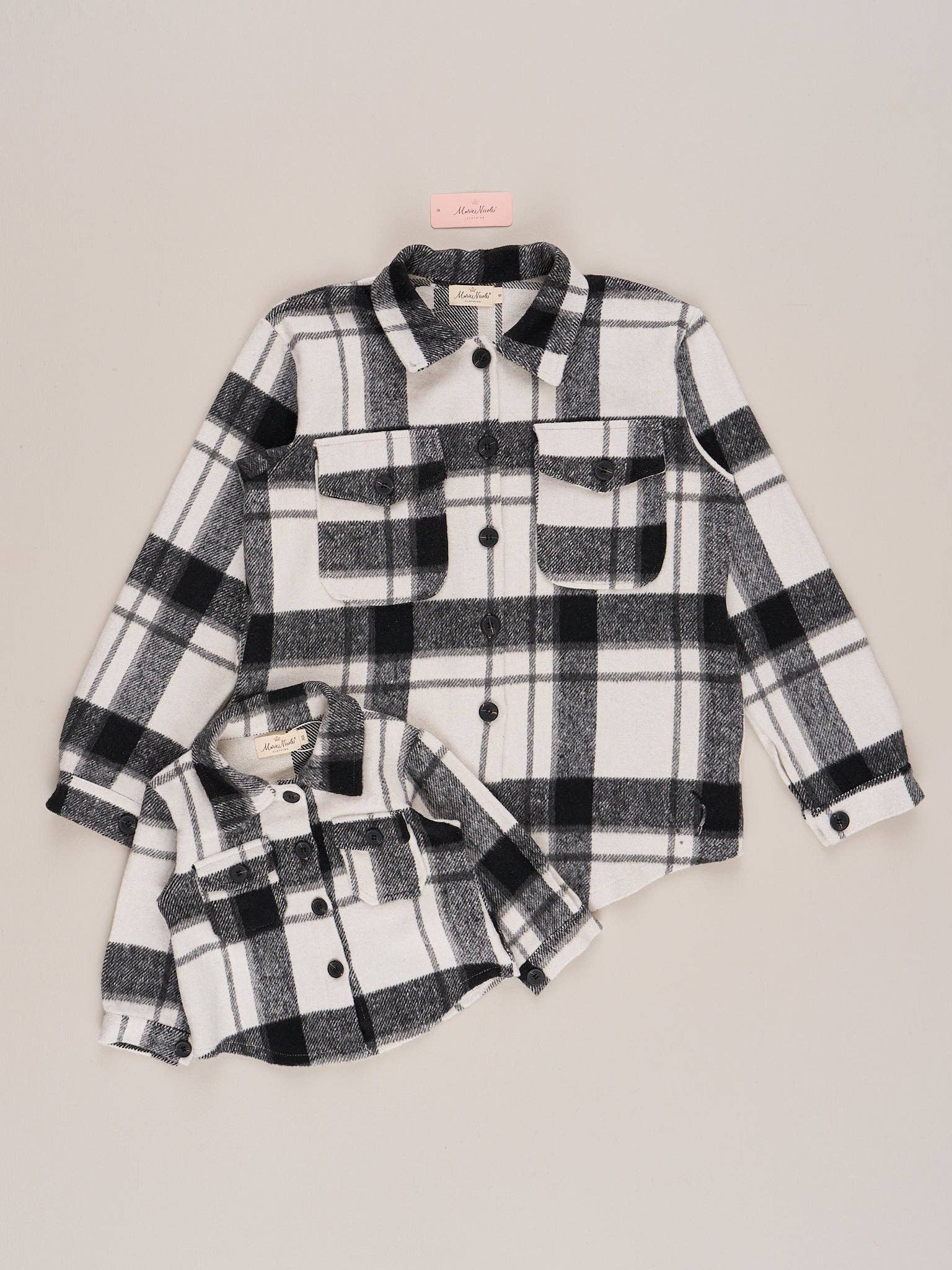 IT'S BACK! It's layering season, baby! This flannel shacket by Marie Nicole Clothing is perfect for the cold weather! Pair it with virtually anything in your wardrobe for an instant, trendy upgrade. Even better- you can match your mini! The best addition to these new flannels are POCKETS!