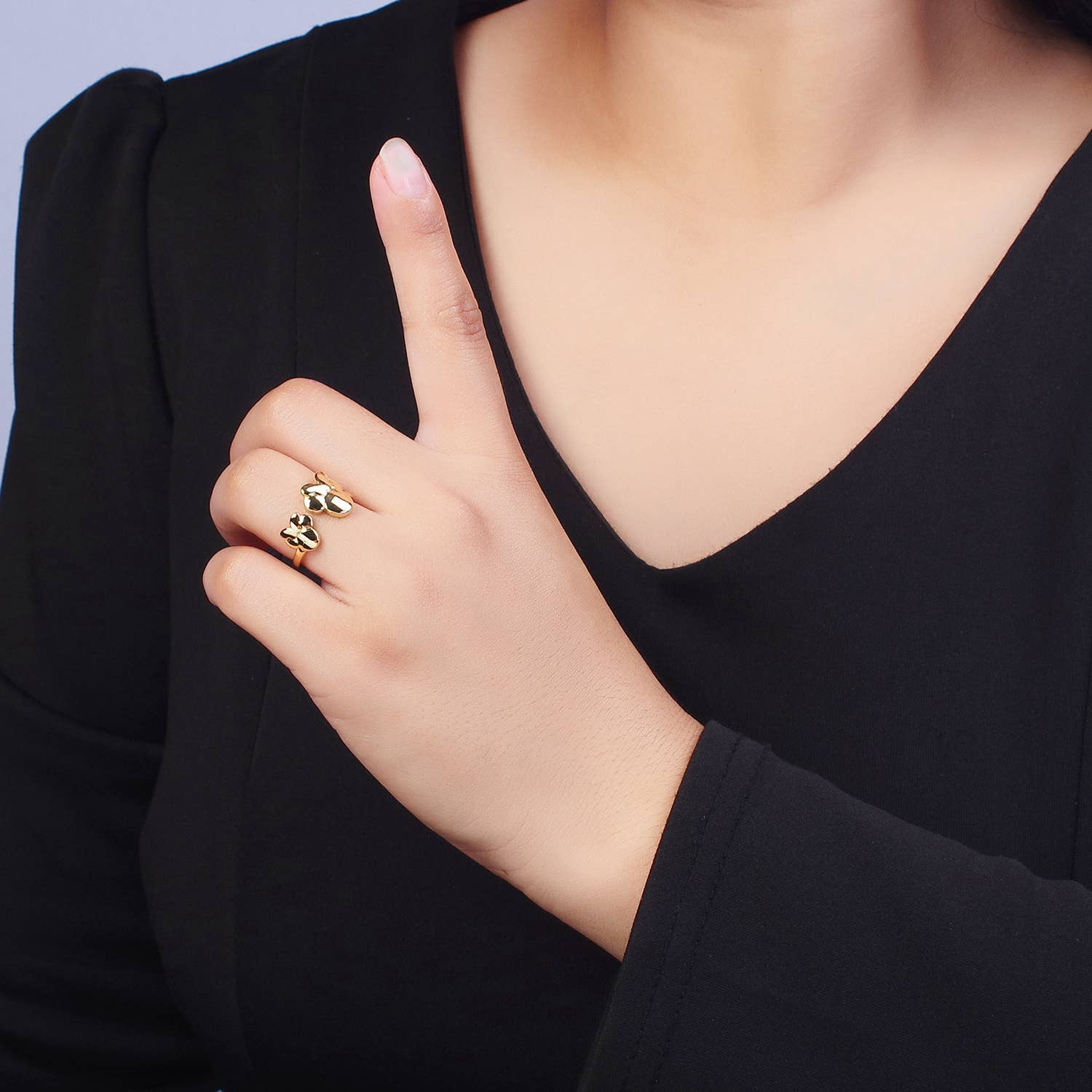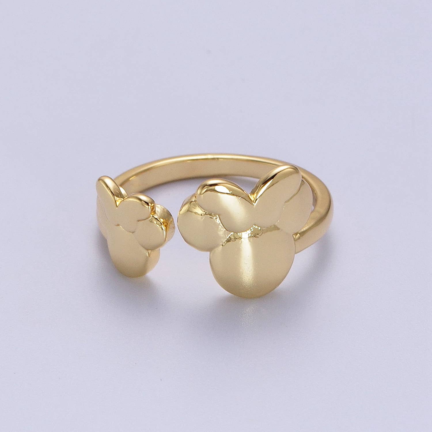 Plain Gold Twin Bowed Mouse Shaped Adjustable Ring O-183
