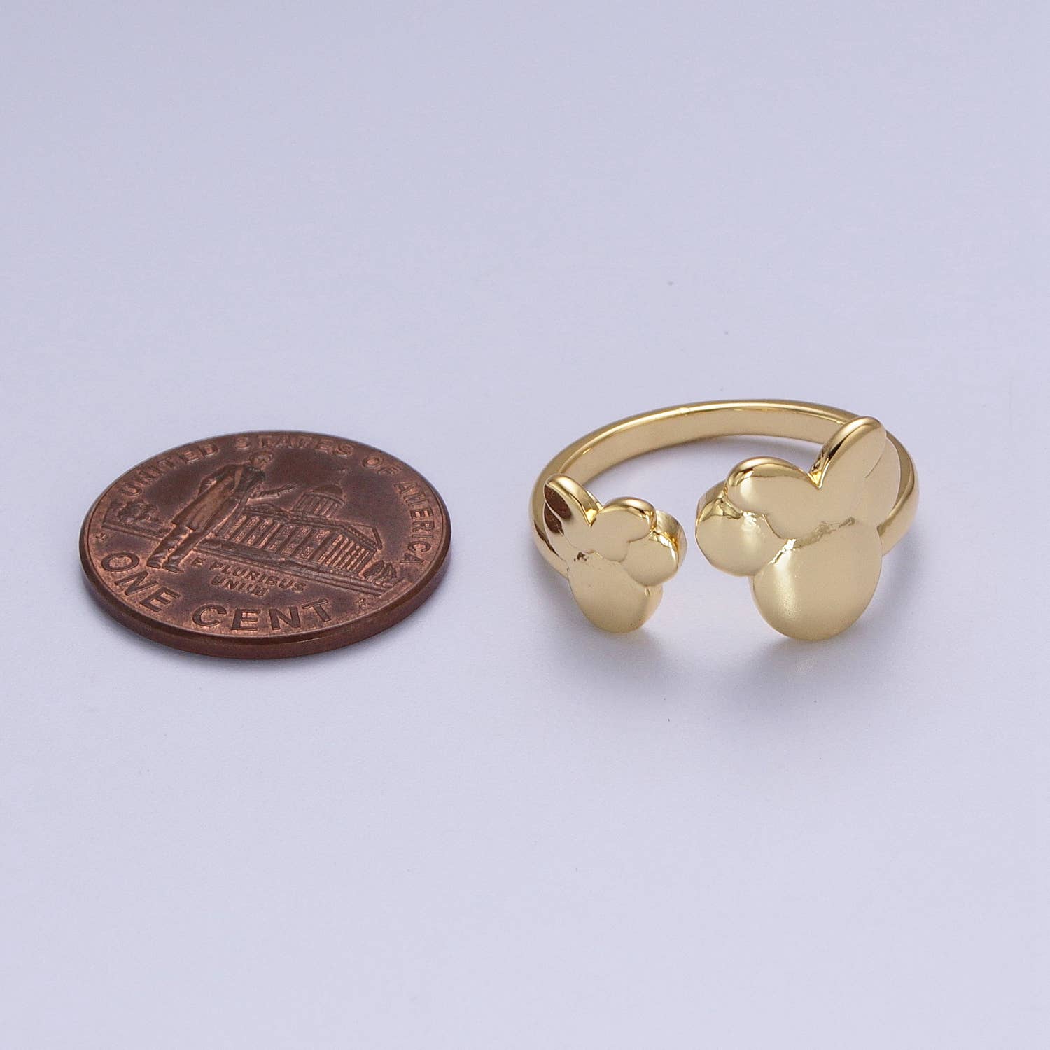 Elegant Cartoon Silhouette Plain Gold Twin Bowed Mouse Adjustable Casual Ring for Women
