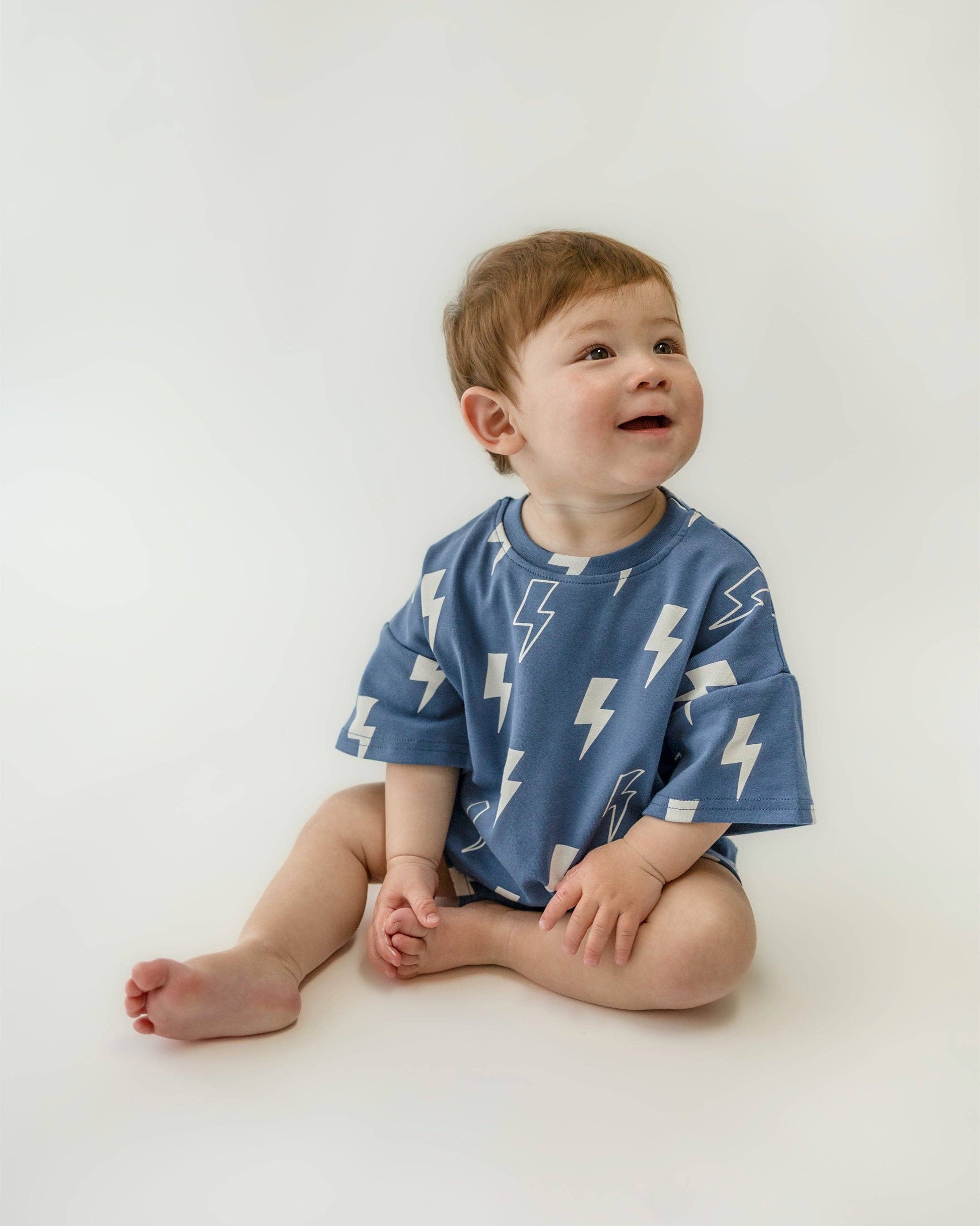 Light up their look with our Blue Bolts shorts set! Featuring a vibrant blue background with bold white lightning bolts, this set is perfect for little ones who love a fun, energetic design. Soft, comfortable, and made for active play, this set is perfect for any adventure.